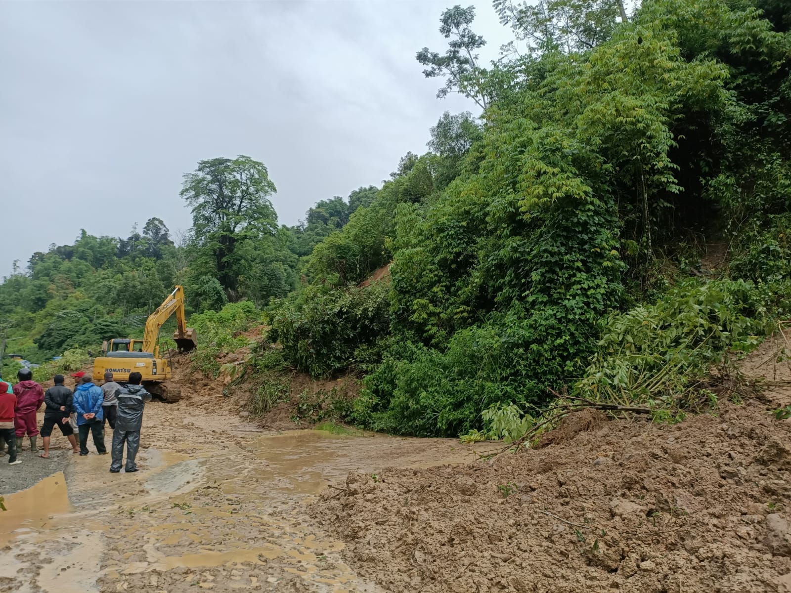 “Alat berat sudah dilokasi dan membersihkan material longsor, namun saat ini hujan masih turun dan longsor terjadi di lima titik. Sehingga harus sabar, saat ini lalu lintas masih lumpuh akibat longsor tersebut. Namun kita bersama instansi terkait berupaya secepatnya membersih material longsor sehingga lalu lintas bisa kembali lancar”pungkasnya.