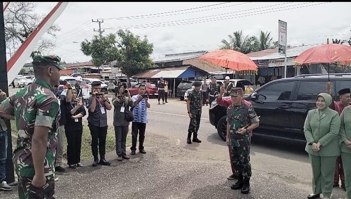 Merangin – Dandim 0420/Sarko Letkol Inf Suyono S. Sos, menyambut kedatangan Pangdam II/Sriwijaya, Mayjen TNI Yanur Adil di dampingi oleh Ketua Persit Kartika Candra Kirana (KCK) wilayah Kodam II/ Sriwijaya Ny,Mila Yanuar Adil, beserta rombongan dalam rangka Kunjungan Kerja ke Kodim 0420/Sarko, Turut menyambut kunjungan Pangdam II/Sriwijaya, Dandim 0420/Sarko, Kasdim 0420/Sarko, beserta Perwira Staf, Danramil jajaran Kodim 0420/Sarko dan jajaran Forkopimda Kabupaten Merangin, Jum,at (19/01/2024).