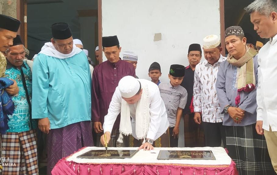 Bangko- Pj Bupati Merangin H Mukti mendampingi Gubernur Jambi H Al Haris pada acara peresmian Masjid Nurul Huda Desa Sekancing Ilir dan peresmian Hall Bulutangkis Pasirah Hambali Marga Tiangpumpung, Jumat (19/1).