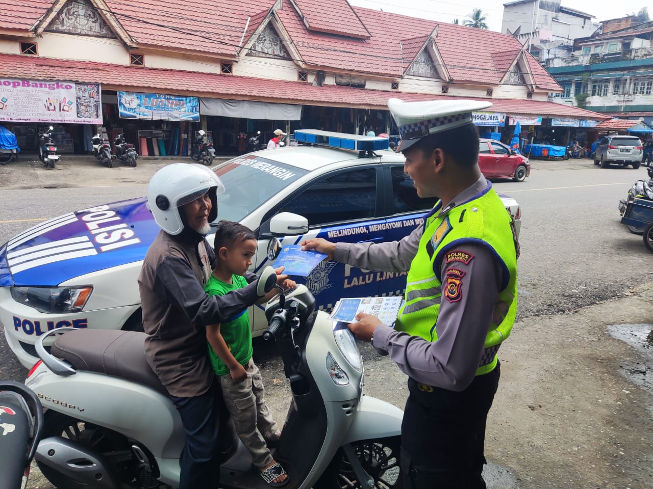 Dengan penuh semangat dan kesadaran akan pentingnya keselamatan berlalu lintas, personil Sat Lantas Polres Merangin menyalurkan brosur dan pamflet kepada para pengendara, baik pengendara roda dua maupun roda empat.