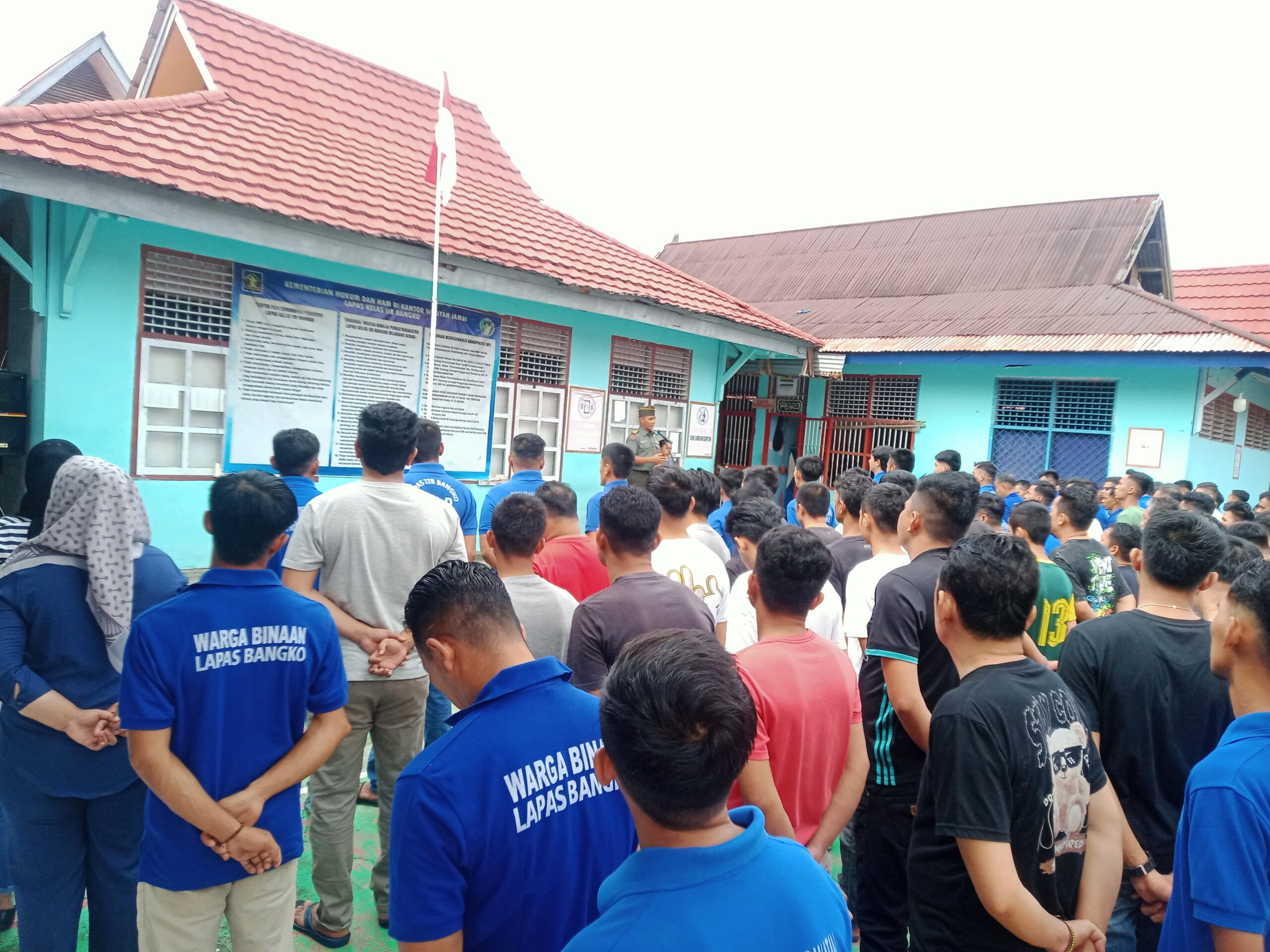 Merangin – Pasi Intel Kodim 0420/Sarko, Kapten Inf Nofri Yudha Mewakili Dandim 0420/Sarko Letkol Inf Suyono S. Sos, Melaksanakan pemberian materi wawasan kesadaran berbangsa dan bernegara untuk warga binaan (Narapidana) di Lapas Kelas IIB Bangko yang berada di Jalan Lintas Sumatera Km. Bangko, Dusun Bangko, Kecamatan Bangko, Kabupaten Merangin, Selasa (05/02/2024).