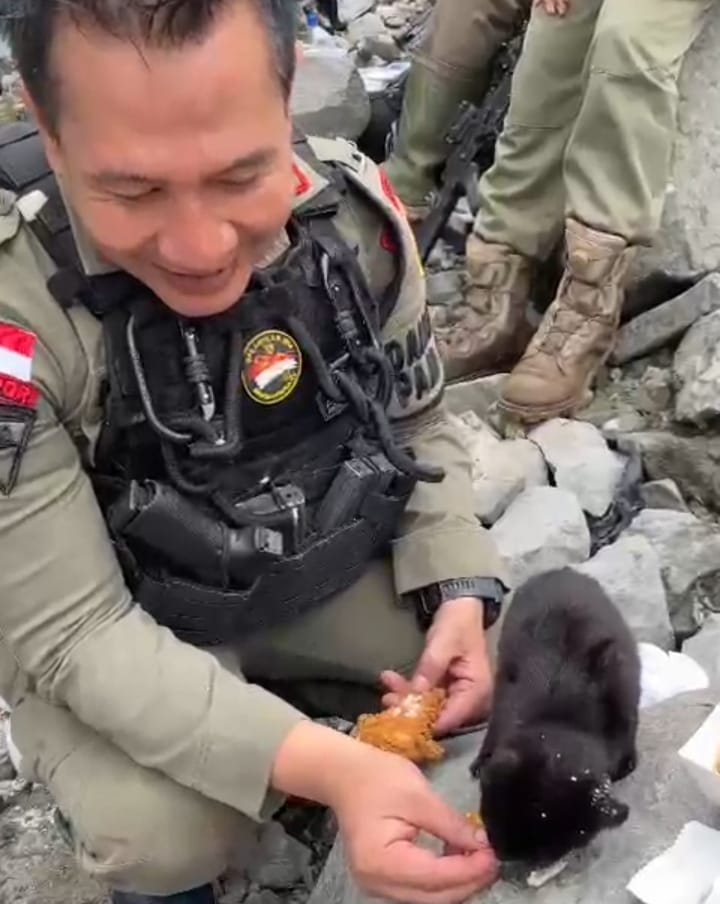 “Ayam goreng yang seharusnya buat saya, ya saya kasih saja buat kucing warna hitam yang menghampiri saya saat bertugas menjaga Papua tepatnya di Timika, karena kucing tersebut lapar,”katanya.