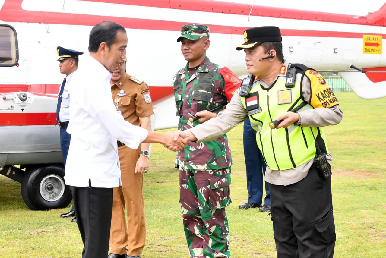 Merangin – Kapolres Merangin, AKBP Ruri Roberto,S.H.,S.I.K.,M.M.,M.Tr.SOU memimpin langsung pengamanan kunjungan kerja (Kunker) Presiden Republik Indonesia Joko Widodo di wilayah Kabupaten Merangin, Rabu (3/4/2024).
