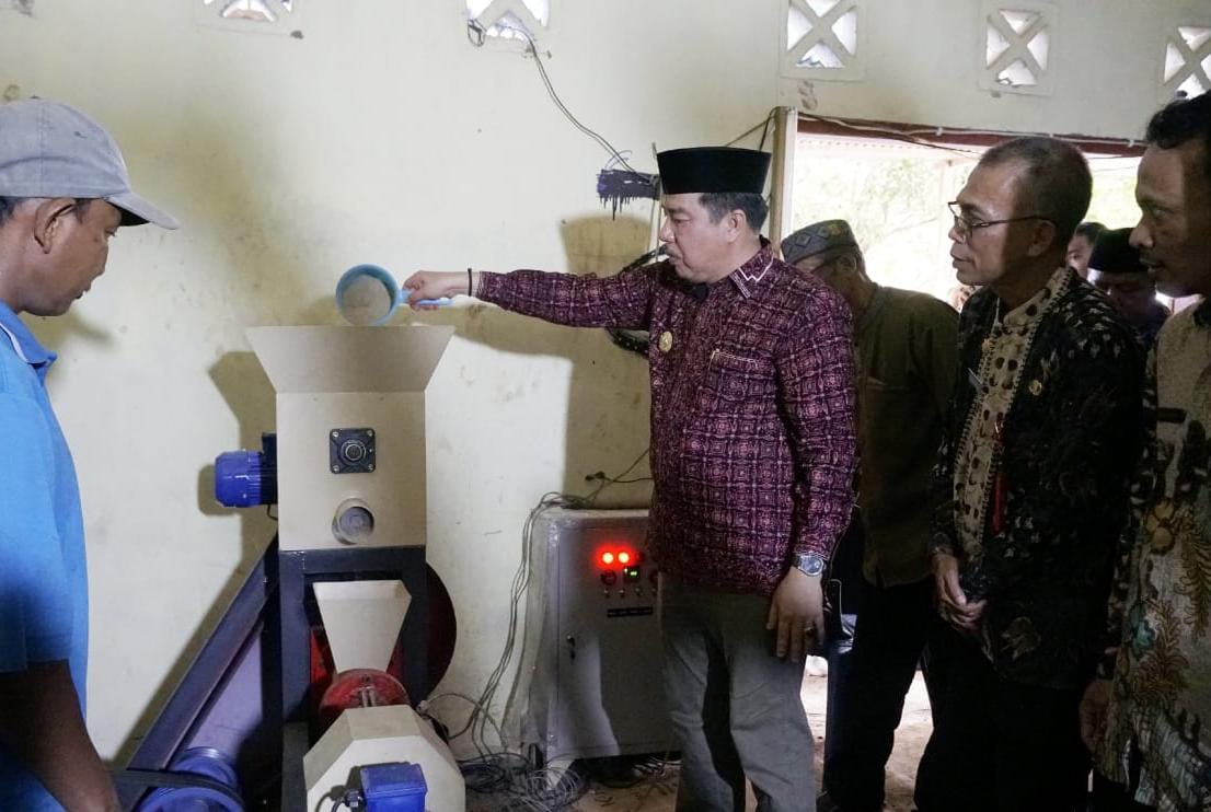 Bangko-Penjabat (Pj) Bupati Merangin H Mukti menyerahkan bantuan mesin pembuat pakan ikan, kepada Kelompok Pembudidaya Ikan Makarti Mina Utama, di Desa Pinang Merah Kecamatan Pamenang Barat, Kamis (02/5).