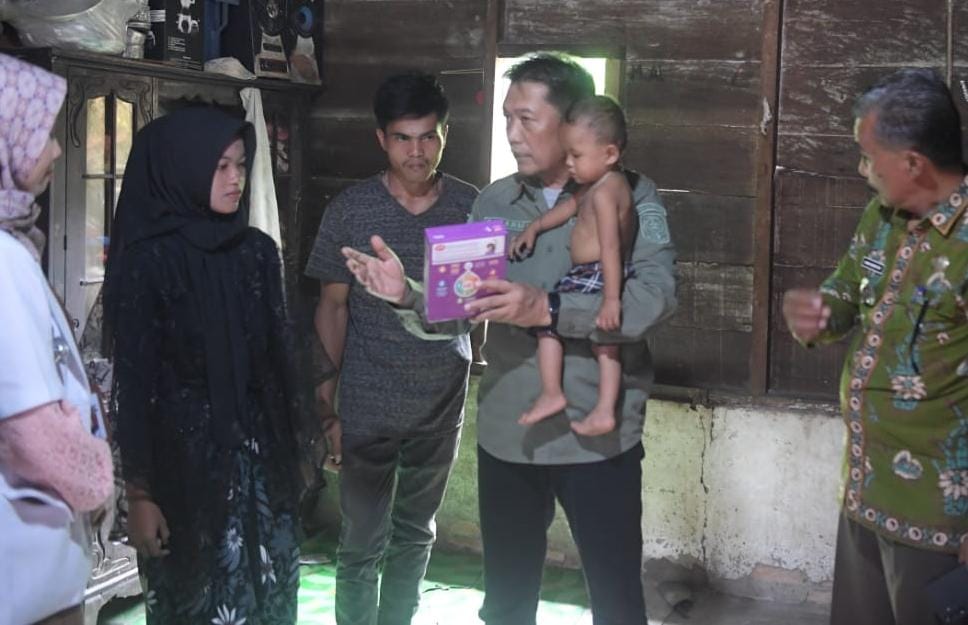 Fajarman didampingi Kadis Pembedayaan Perempuan dan Keluarga Berencana PKB H Abdaie, Kadis PMD Andre, perwakilan dari Dinas Kesehatan, Camat Batang Masumai, para Kepala Desa dan para anggota TPPS, meninjau dan memberikan bantuan susu dan telor untuk anak Stunting di Desa Kederasan Panjang dan Desa Nibung.