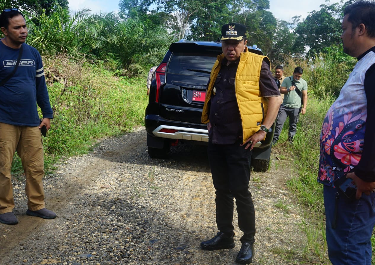 Pada hari libur peringatan kenaikan Isa Almasih itu, Pj bupati bersama rombongan juga memantau kondisi jalan Simpang Tengkorak – Simpang Pulau Rengas yang akan segera diperbaikan.
