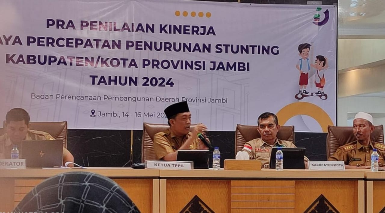Pada acara pra penilaian kinerja upaya percepatan penurunan Stunting kabupaten/kota se-Provinsi Jambi 2023 yang berlangsung di Aula Bappeda Provinsi Jambi pada Selasa (14/5) itu, Ketua Tim Percepatan Penurunan Stunting (TPPS) Kabupaten Merangin Fajarman, memaparkan pelaksanaan berjalannya aksi konvergensi percepatan penurunan Stunting di Kabupaten Merangin tahun 2023 secara mendetail.