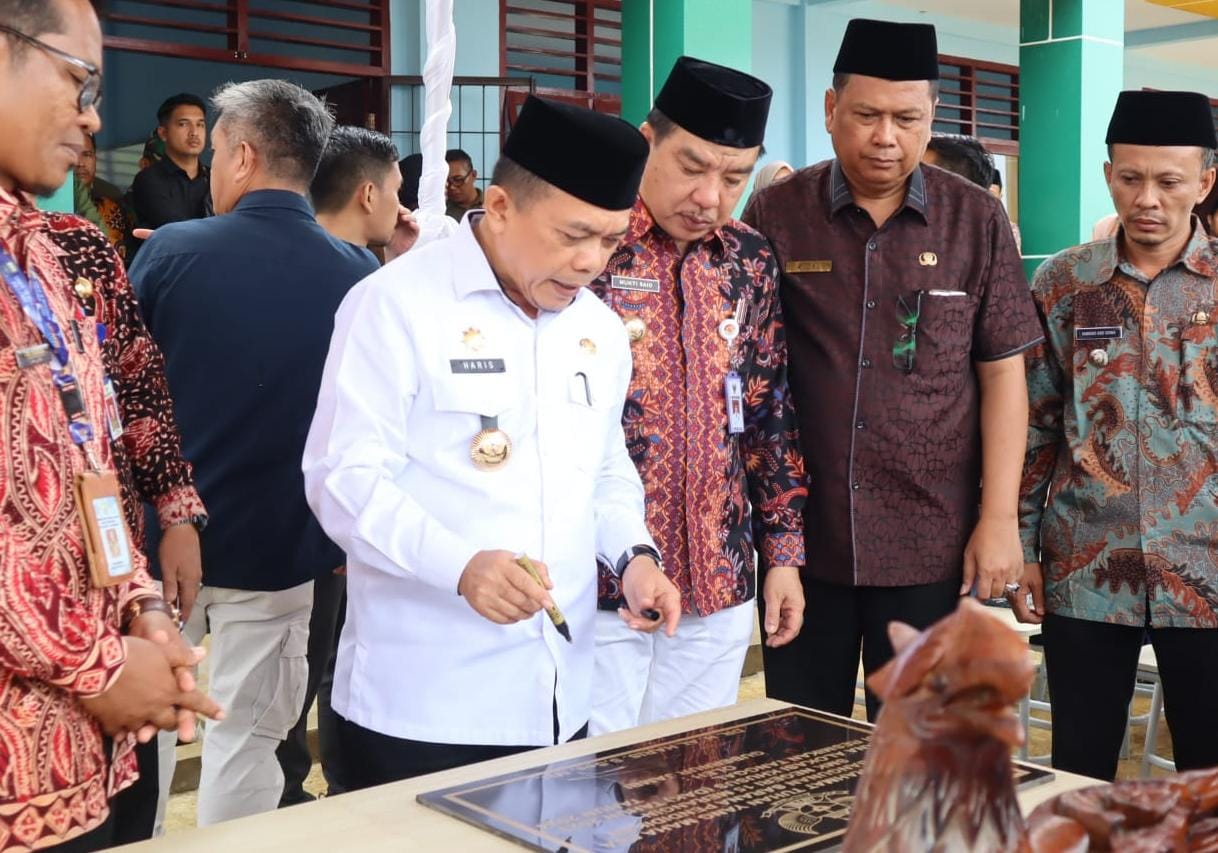 Bangko- Penjabat (Pj) Bupati Merangin H Mukti mendampingi Gubernur Jambi H Al Haris meresmikan Gedung Sekolah Menengah Kejuruan (SMK) Negeri 15 Merangin di Desa Mampun Baru Kecamatan Pamenang Barat, Jumat (24/5).