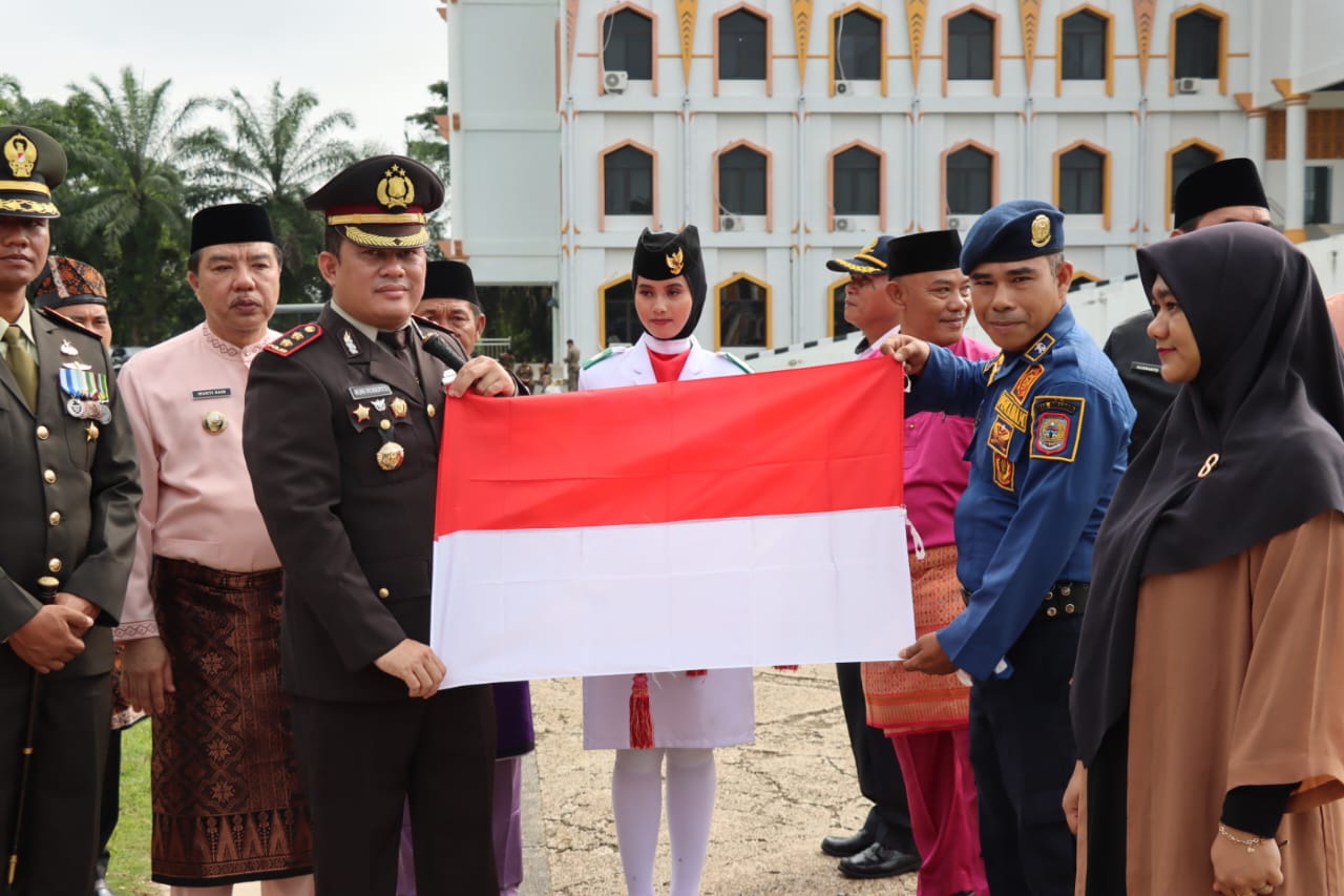 Usai upacara Pj Bupati bersama Kapolres Merangin membagi-bagikan Bendera Merah Putih kepada peserta upacara, yang merupakan program 10 juta Bendera Merah Putih yang dilakukan Badan Kesbangpol Merangin dibawah Kementerian Dalam Negeri.