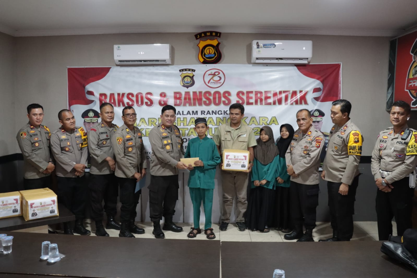 Merangin – Bakti sosial dan bantuan sosial dilakukan serentak di seluruh Indonesia dalam rangka Hari Bhayangkara ke-78. Pembukaan kegiatan dipimpin langsung oleh Kapolri Jendral Polisi Listyo Sigit Prabowo di Lapangan Mabes Polri Selasa (25/6/2024).