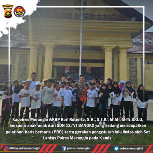 Merangin – Jambi. Dimasa pentahapan Pilkada serentak tahun 2024 yang cukup padat diisi oleh kegiatan kedinasan. Kapolres Merangin AKBP Ruri Roberto, S.H., S.I.K., M.M., M.Tr.S.O.U, tampak masih sempat bercengkeramah dengan anak-anak dari Sekolah Dasar Negeri SDN 12/VI BANGKO yang sedang mendapatkan pelatihan baris berbaris (PBB) serta gerakan pengaturan lalu lintas dari Sat Lantas Polres Merangin pada Kamis (05/09/2024) sekira pukul 16.00 Wib .