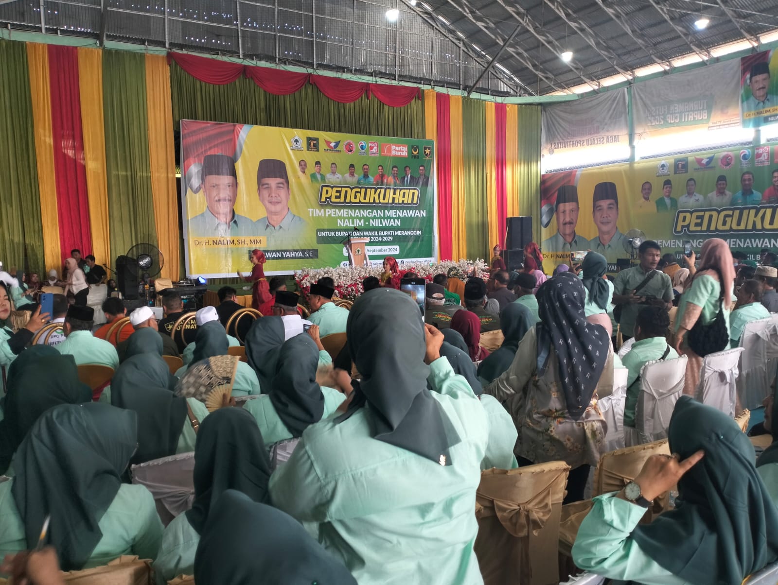 Merangin-Bertempat di stadion futsal KJM Sungai Ulak kecamatan Nalo Tantan kabupaten Merangin Tim Pemenangan MENAWAN (Menangkan Nalim-Nilwan) dilantik Rabu (11/9/2024).