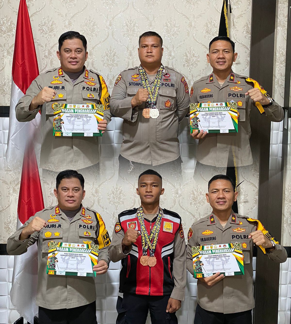 “Anggota tersebut adalah Bripka Herman Martua, SE Ps. Paur Dalpers Bag Sdm Polres Merangin, Berhasil meraih 1 perak di kelas kata Tni-Polri dan 1 perunggu kelas kumite bebas Tni-Polri, kemudian ada juga Bripda Johan Rivaldo brigadir Sat Sabhara Polres Merangin yang juga berhasil meraih 2 perunggu dikelas kata Tni-Polri dan kelas Kumite Bebas Tni-Polri ,” ujar Ruri.