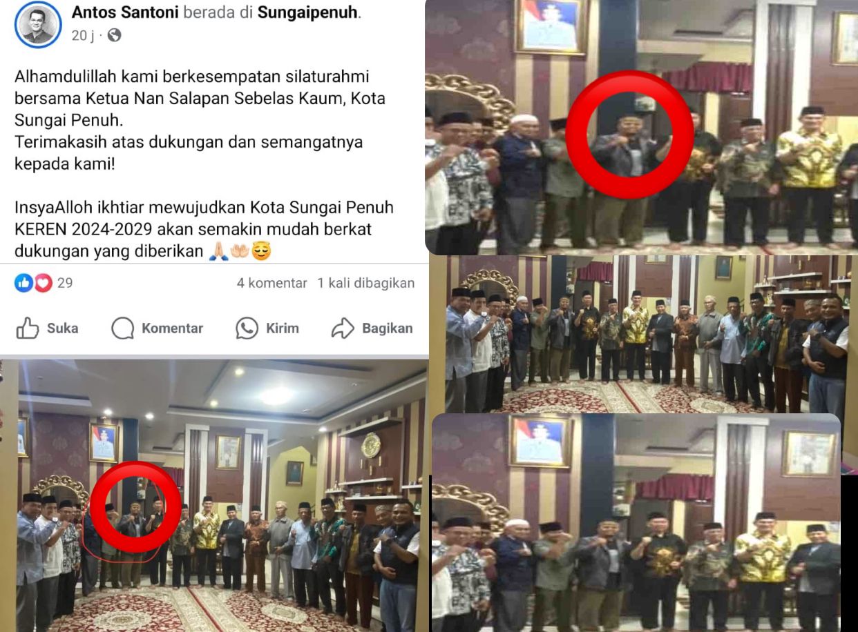 Postingan tersebut diunggah oleh akun Facebook Antos Santoni (Paslon Wako Sungaipenuh) dimana Emrizal bersama ketua Nan Salapan Sebelas Kaum, kota Sungai Penuh datang ke Rumah Paslon Antos.
