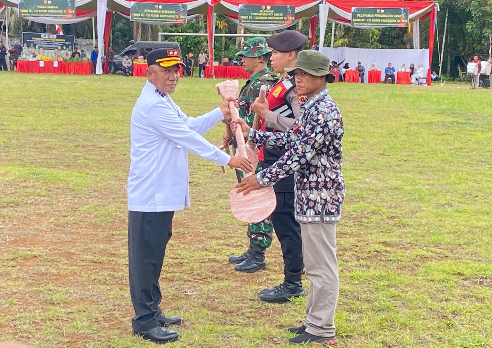 Pada kesempatan itu, Pj bupati menyerahkan alat kerja ke petugas, menyalurkan bantuan kepada masyarakat, meninjau stand Usaha Mikro Kecil Menengah (UMKM), menanam pohon dan meninjau jalan yang akan dikerjakan pada program TMMD tersebut.Tampak hadir pada acara pembukaan TMMD ke-122 itu, Danrem 042 Gapu Brigjen TNI Rachmad diwakilkan Kasiter Korem 042 Gapu Kolonel Kaveleri Andriyan Dwi Atmoko, Dandim 0420 Sarko Letkol Inf Suyono, Kapolres Merangin AKBP Ruri Roberto.Hadir juga Ketua DPRD Merangin Muhammad Rivaldi, Sekda Sarolangun Dedi Andrian, Pejabat tinggi pratama Pemkab Merangin, Kepala Bank 9 Jambi Bangko dan Camat Bangko Barat, Kepala Desa Bedeng Rejo dan sejumlah undangan penting lainnya.
