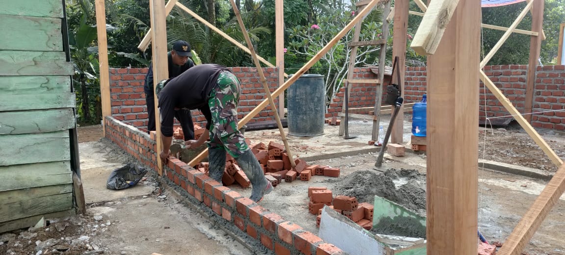 Sementara itu Koptu Kiswanto Anggota Satgas TMMD ke 122 Kodim Sarko saat ditemui dilokasi pembangunan RTLH mengatakan rumah tersebut akan dibangun permanen.