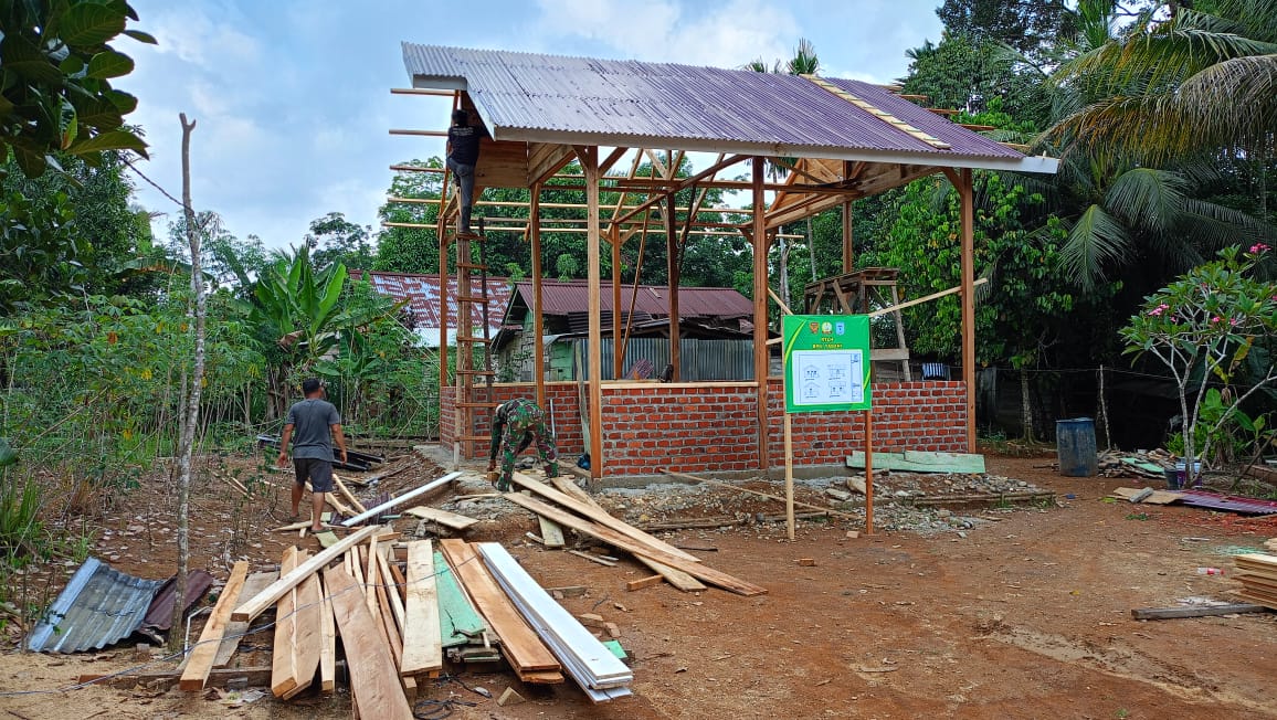 Merangin-Satgas TMMD (TNI Manunggal Membangun Desa) ke 122 Kodim 0420 Sarko yang dilaksanakan di desa Bedeng Rejo kecamatan Bangko Barat juga menyasar rumah warga yang tidak layak huni.