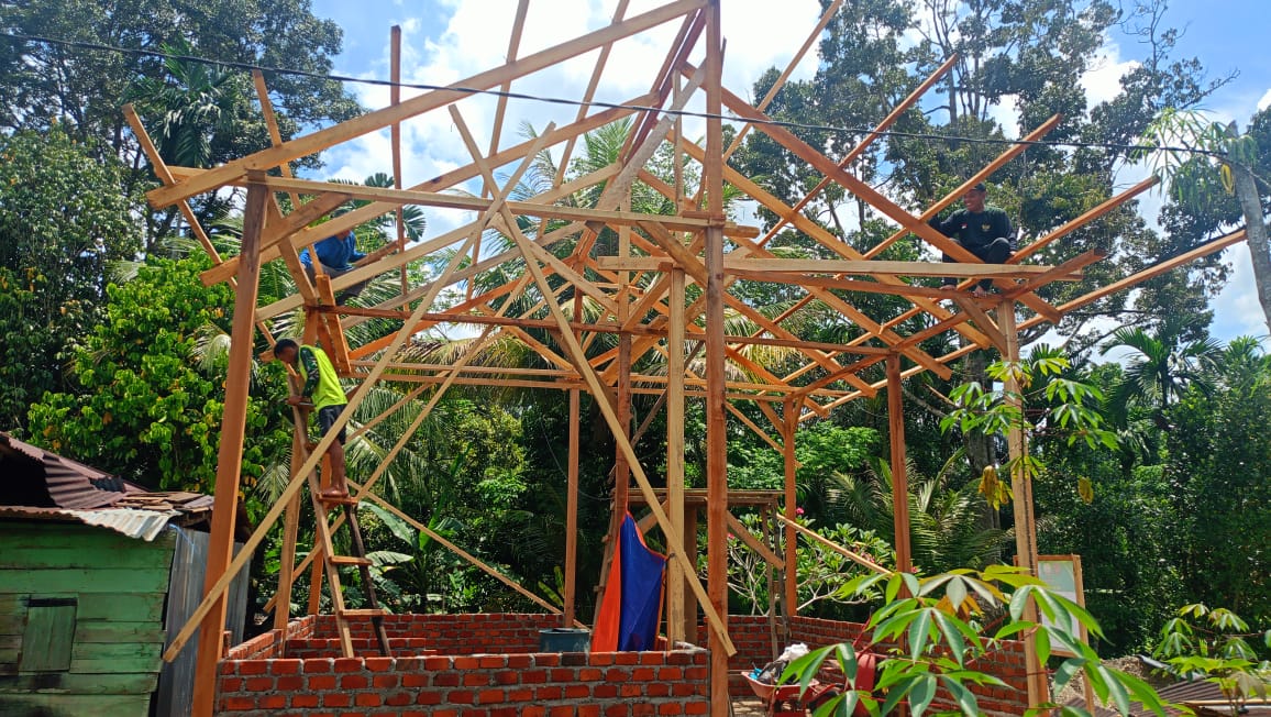 “Hari ini kita memasang kuda-kuda dan atap rumah, insyaallah sehari ini atap rumah yang baru untuk pak Yabani bisa selesai”terang Bambang Minggu (6/10/2024).