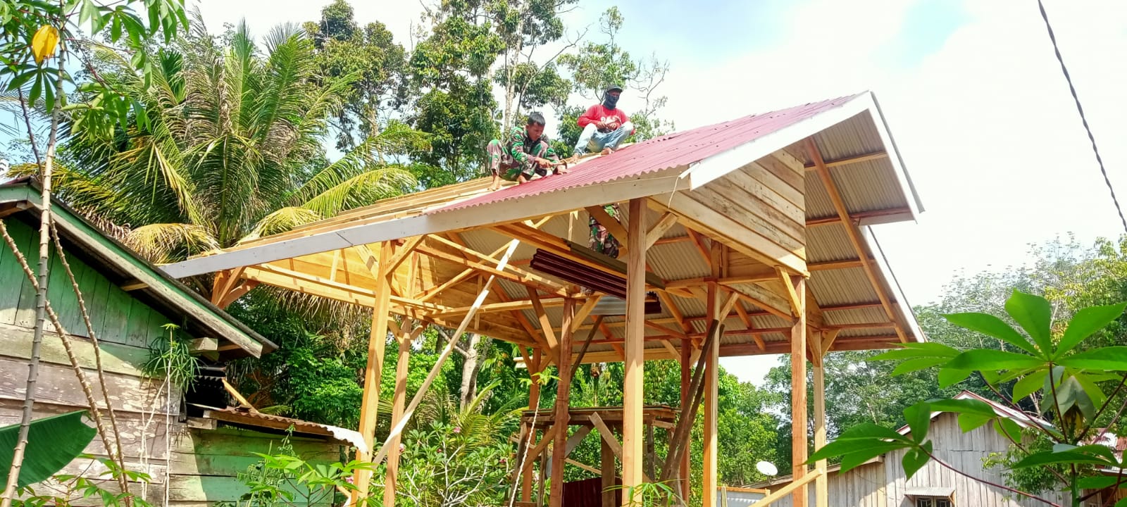 Dikoordinir oleh Lettu Inf Limbong, Satgas TMMD ke 122 Kodim 0420 Sarko bersama warga setempat melanjutkan pekerjaan dengan melakukan pemasangan atap seng pada rumah Yabani. Pemasangan atap ini merupakan salah satu tahapan penting dalam proses pembangunan rumah yang diharapkan dapat memberikan kenyamanan bagi keluarga Yabani, terutama pada musim hujan.