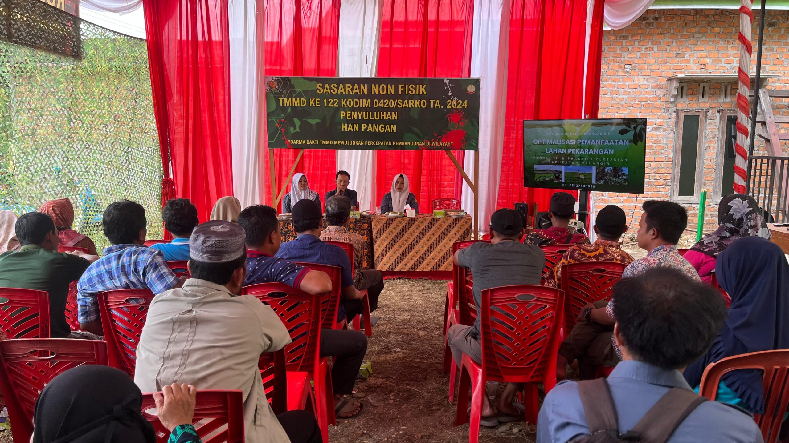 Penyuluhan ini dipimpin oleh dua narasumber, yaitu Wiwi Ratna dan Lita Susianti perwakilan dari Dinas Tanaman Pangan dan Hortikultura. Kegiatan ini menjadi bagian dari sasaran non fisik TMMD yang bertujuan untuk meningkatkan kapasitas dan kesadaran masyarakat dalam menjaga ketahanan pangan secara mandiri melalui pemanfaatan pekarangan rumah.