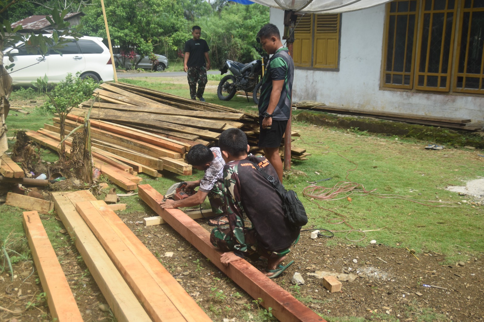 Salah satu anggota Satgas TMMD ke 122 kodim 0420 Sarko Serda Boni mengatakan saat ini dirinya bersama anggota satgas lainnya sedang membantu warga membuka papan cor pondasi.