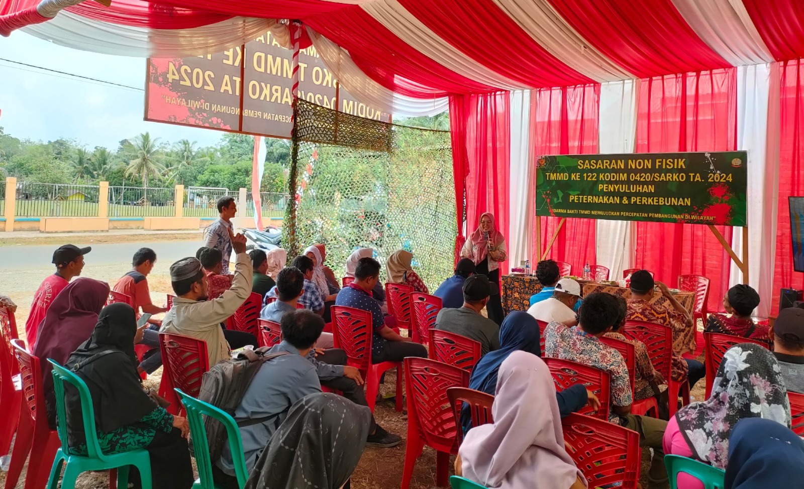 Merangin – Untuk meningkatkan keterampilan dan kesejahteraan masyarakat Satuan Tugas (Satgas) TNI Manunggal Membangun Desa (TMMD) ke-122 Kodim 0420/Sarko menyelenggarakan penyuluhan perikanan kepada warga Desa Bedeng Rejo, Kecamatan Bangko Barat, Kabupaten Merangin.