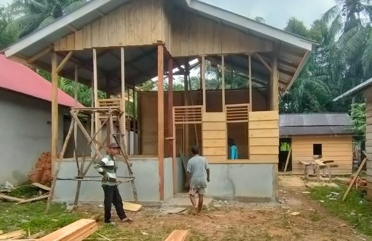 Saat ini, anggota Satgas TMMD melakukan pemasangan dinding papan rumah yang ditargetkan selesai beberapa hari ini untuk meningkatkan kualitas hidup keluarga Supardi.
