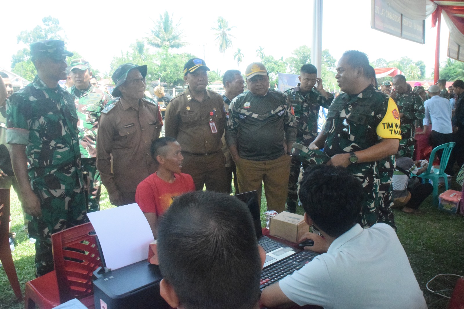 Merangin-Dalam mendukung program TNI Manunggal Membangun Desa (TMMD) Ke-122 Kodim 0420 Sarko Kolonel Inf Septa Viandi Dwi Putra, S.IP, M.Han, yang mewakili Mayjen TNI Christian K. Tehuteru, Asisten Operasi Kepala Staf Angkatan Darat (Asops KASAD), melihat langsung pembuatan e-KTP di Desa Bedeng Rejo.