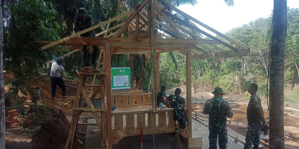 Merangin – Satgas TNI Manunggal Membangun Desa (TMMD) ke-122 Kodim 0420/Sarko berkomitmen mendukung program ketahanan pangan nasional, salah satu kegiatannya kali ini dengan membangunkan saung untuk warga Desa Bedeng Rejo, Kecamatan Bangko Barat, Kabupaten Merangin.