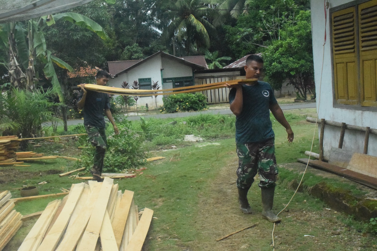 “Hari ini kita menyiapkan material kayu papan yang nantinya akan kita gunakan untuk memasang dinding dan lantai saung” ujar Peltu Febri Jumat (25/10/2024).