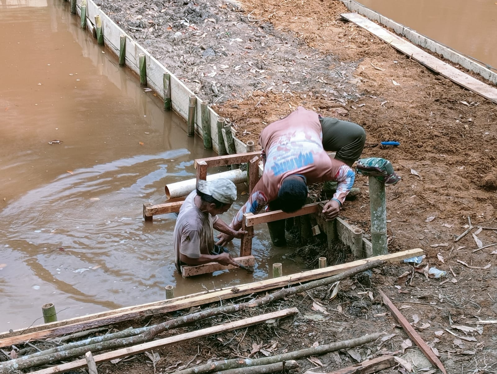 “Kita buat dua petak, hari ini menyervis kolam. Dinding sudah selesai kita pasang, pipa saluran air juga sudah selesai kita pasang”terang Kapten Sahita Sabtu (26/10/2024).