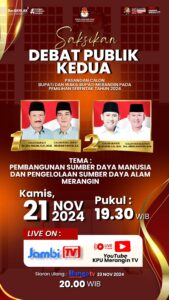Untuk diketahui, pada debat kedua ini juga disiarkan secara live di Jambi TV dan Live di YouTube KPU Merangin, serta siaran ulang di Bungo TV.