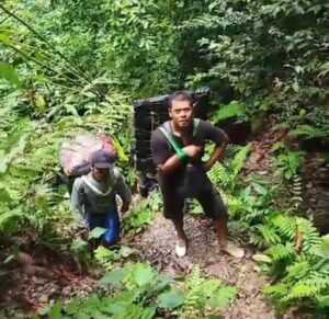 Bahkan jalur yang ditempuh cukup ekstrime, harus melewati sungai dengan batu yang cukup besar, hutan dengan perbukitan yang cukup curam, hingga prosesi penyaluran logistik tersebut betul betul harus berhati-hati.