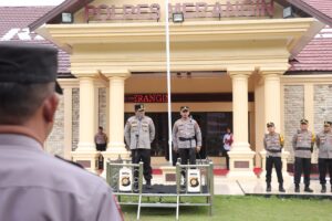 Acara apel pisah sambut yang berlangsung haru tersebut kemudian dilanjutkan dengan acara Laporan Kesatuan dan kenal pamit dan ditutup dengan acara pelepasan AKBP Ruri Roberto beserta istri.