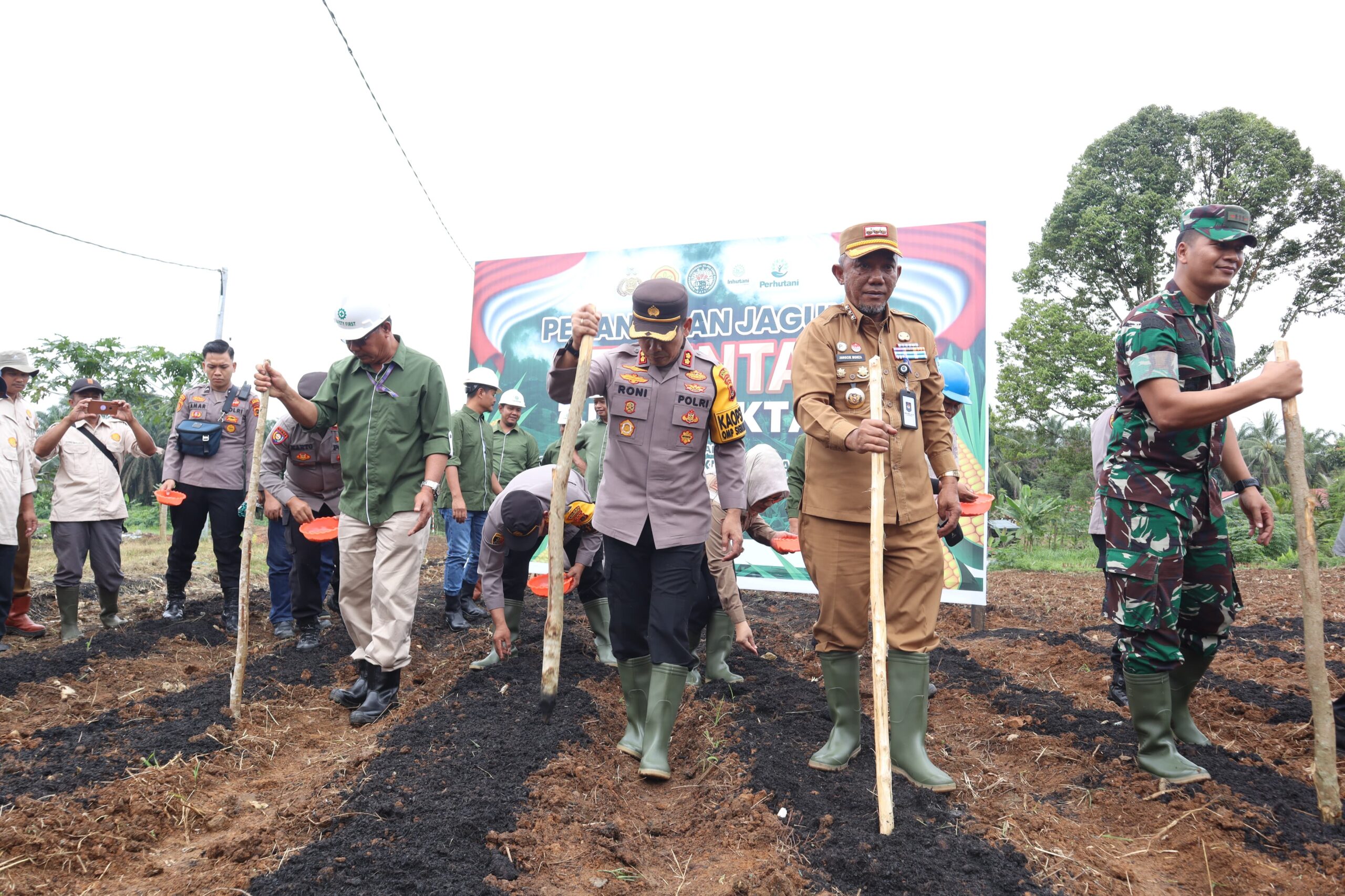 “Saat ini Polres Merangin yang didukung pemerintah daerah serta beberapa perusahaan dan masyarakat kelompok tani telah melakukan penanaman jagung secara serentak pada hari ini dengan luas lahan 53 hektar, terdiri dari PT. SAL 5 hektar, PT.KDA 10 hektar dan selebihnya Polsek jajaran yang bekerjasama dengan kelompok tani dengan luas lahan 38 hektar.” Sebut Kapolres.