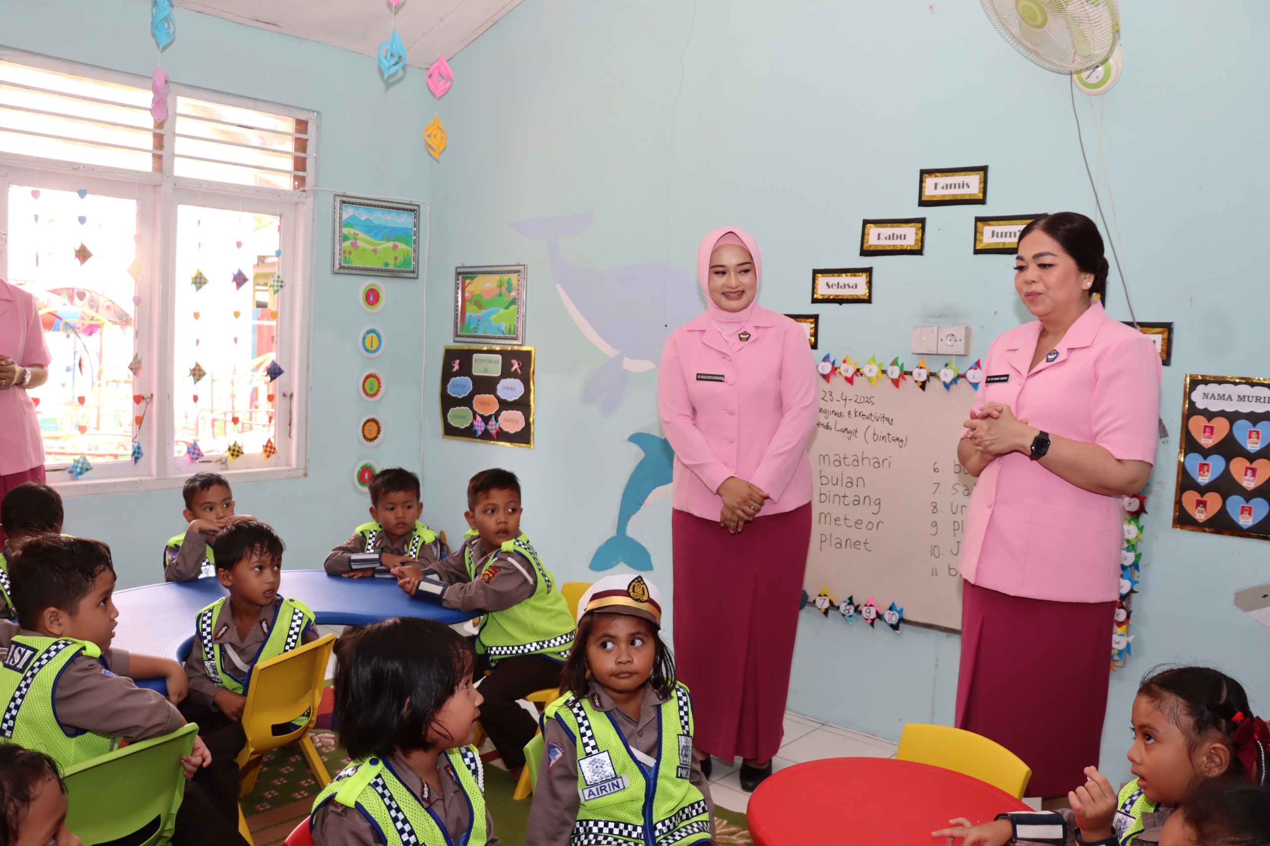 Merangin – Jambi. Ketua Pengurus Yayasan Kemala Bhayangkari (YKB) Daerah Jambi, Ny. Evi Krisno Siregar, melakukan kunjungan kerja ke TK Kemala Bhayangkari 36 Merangin, pada Rabu (23/04/2025).