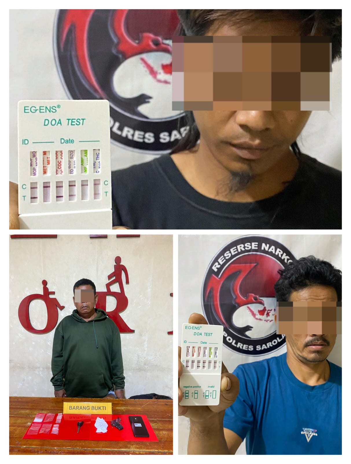 Sarolangun-Satuan Narkoba Polres Sarolangun, Jambi mengamankan tiga pelaku penyalahgunaan narkotika diduga jenis sabu, ketiganya ditangkap Tim Rajawali saat melintas di Kelurahan Aur Gading Kecamatan Sarolangun Kabupaten Sarolangun Provinsi Jambi.