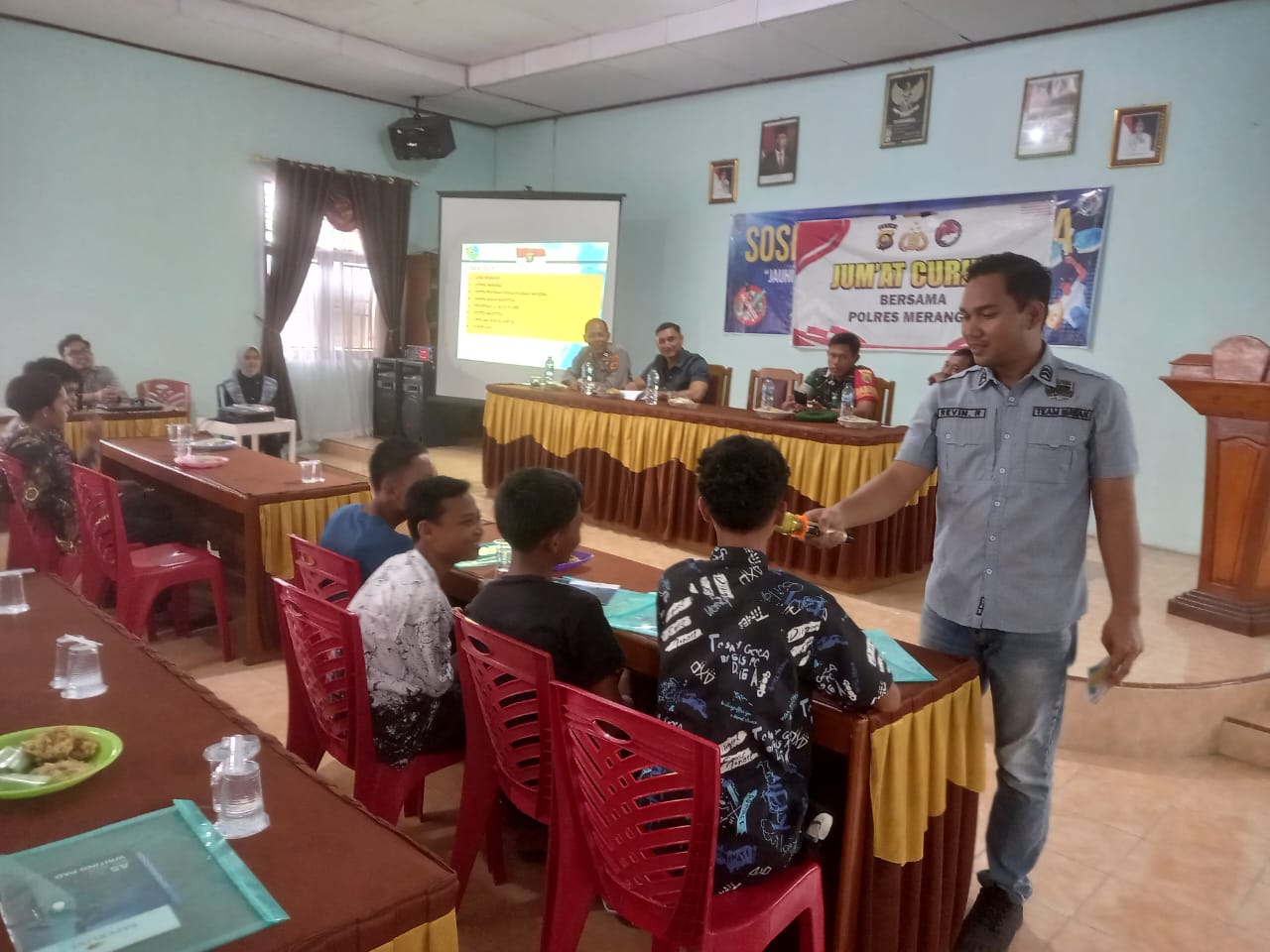 Merangin – Sat Narkoba Polres Merangin melaksanakan jumat curhat bersama pemuda dan pelajar di talang kawo, Dusun Bangko, Kecamatan Bangko, Jumat (25/4/25)