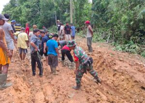 Sarolangun, Rabu 30 April 2025 — Koramil 420-01/Batang Asai, Kodim 0420/Sarko Sigap dalam membantu warganya yang terkena dampak Banjir Bandang, dipimpin langsung oleh Danramil 420-01/Batang Asai Lettu Inf Juhardi bersama Anggotanya. Bencana banjir bandang ini melanda Desa Bukit Berantai, Kecamatan Batang Asai, Kabupaten Sarolangun, pada Rabu dini hari sekitar pukul 00.30 WIB. Peristiwa ini dipicu oleh tingginya intensitas hujan yang mengguyur wilayah hulu Sungai Narso selama kurang lebih dua jam tanpa henti.
