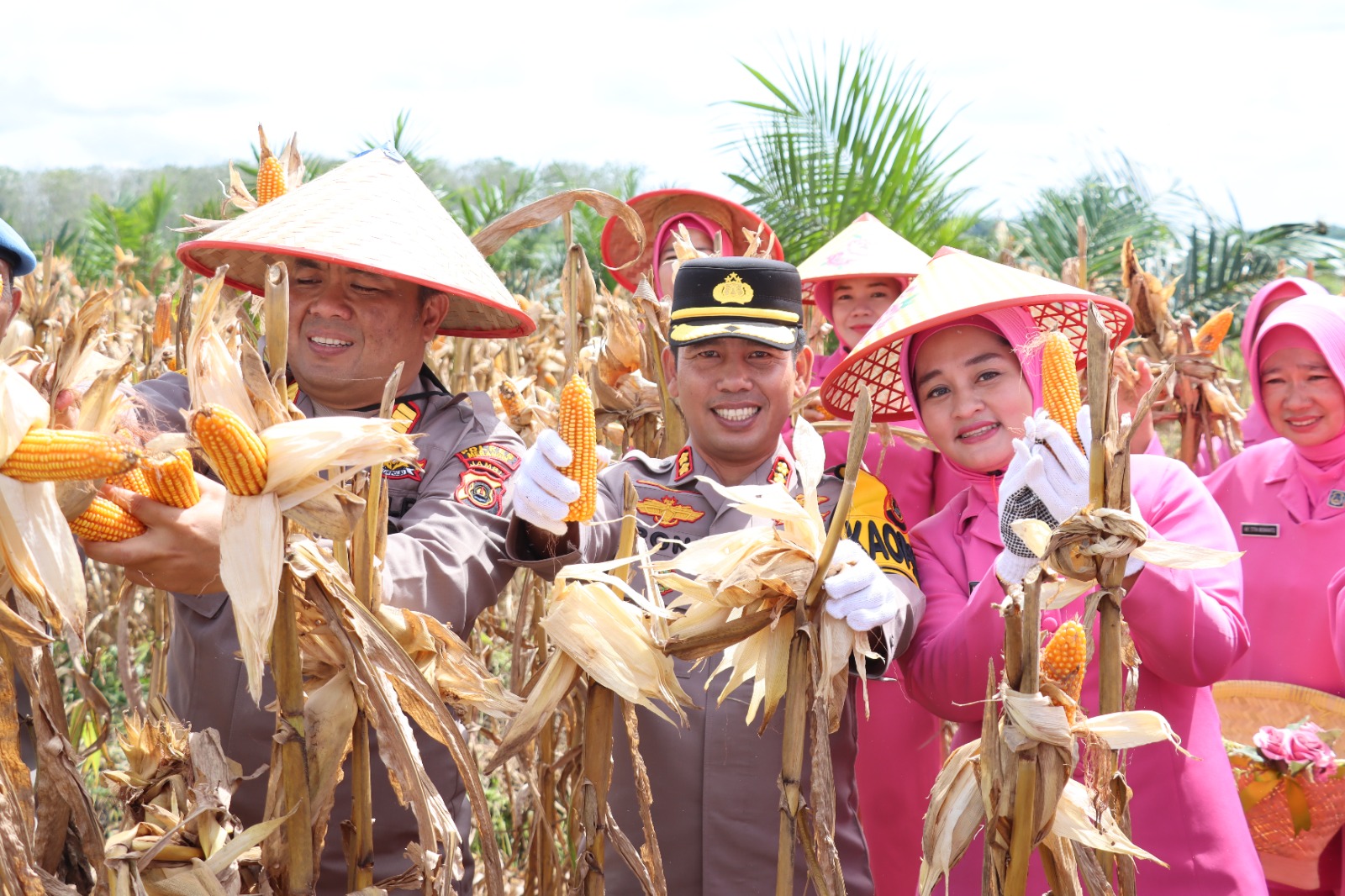 Merangin – Jambi, Polres Merangin menggelar panen raya jagung perdana. Hasil panen kali ini diperkirakan mencapai 25 ton jagung dari luas lahan 5 hektare. Kegiatan panen jagung tersebut dilaksanakan pada hari Jum’at (16/05/2025) sekira pukul 09.00 Wib di areal tumpang sari perkebunan sawit milik PT. Krisna Duta Agroindo (KDA) yang terletak di Desa Langling Kec. Bangko Kab. Merangin.