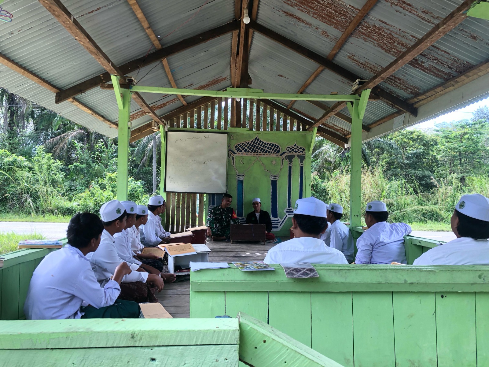 Wujud kepedulian terhadap generasi muda penerus masa depan bangsa, Babinsa Koramil 420-02/Limun Kodim 0420/Sarko Serda Ahmad Sopani memberikan materi wawasan kebangsaan (wasbang) kepada santri Ponpes Serambi mekah al aziziyah Desa Pelawan jaya Kecamatan Singkut Kabupaten Sarolangun, Minggu (18/05/2025).