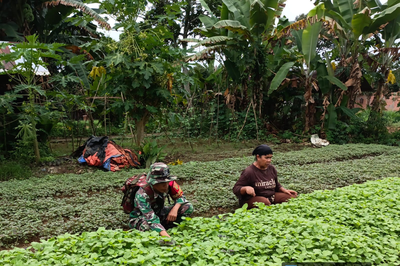 Sarolangun – Sebagai wujud peran aktif TNI dalam mendukung program ketahanan pangan, Babinsa Koramil 420-04/Sarolangun Kodim 0420/SARKO Serda Ibrohim melaksanakan kegiatan pendampingan pertanian dengan membantu proses perawatan Tanaman Bayam milik warga di Desa Pulau Buayo Kecamatan Bathin VIII Kabupaten Sarolangun, (05/06/2025)