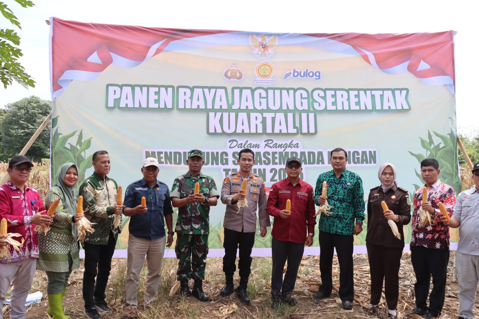 MERANGIN – Kapolres Merangin AKBP Roni Syahendra bersama para PJU dan Instansi terkait melaksanakan Panen Raya Jagung Serentak Kuartal II Tahun 2025, di kebun taman Firdaus Desa Langling, Kecamatan Bangko, secara virtual, Kamis (05/06/2025).