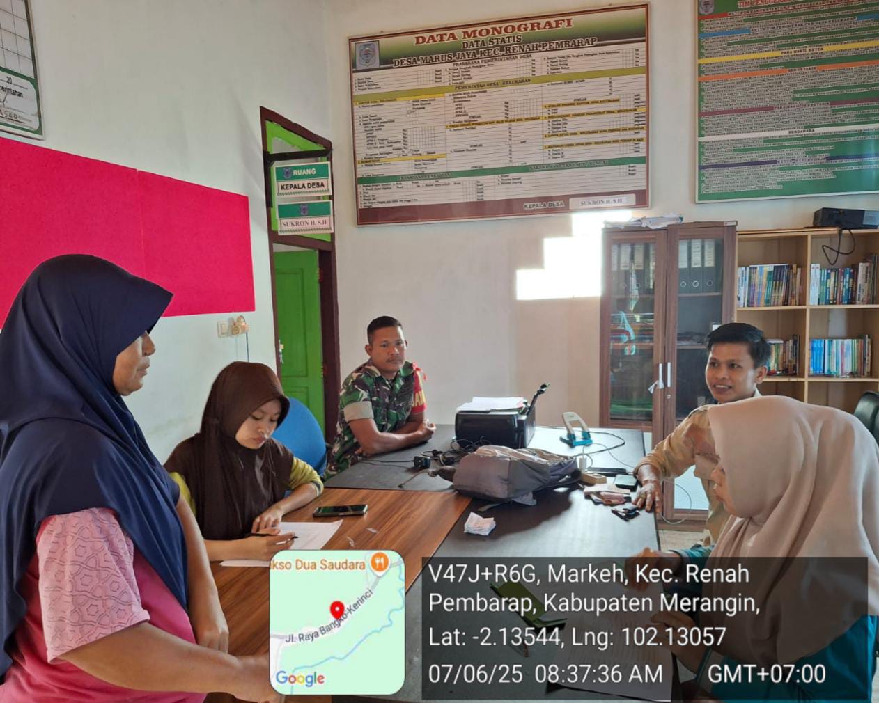 Babinsa Koramil 420-07/Sei Manau Serda Eko ediyanto melaksanakan Komunikasi Sosial (Komsos) dalam rangka Pembinaan Teritorial dengan masyarakt Desa Marus Jaya Kec, Renah pembarap Kabupaten Merangin.(07/06/2025)