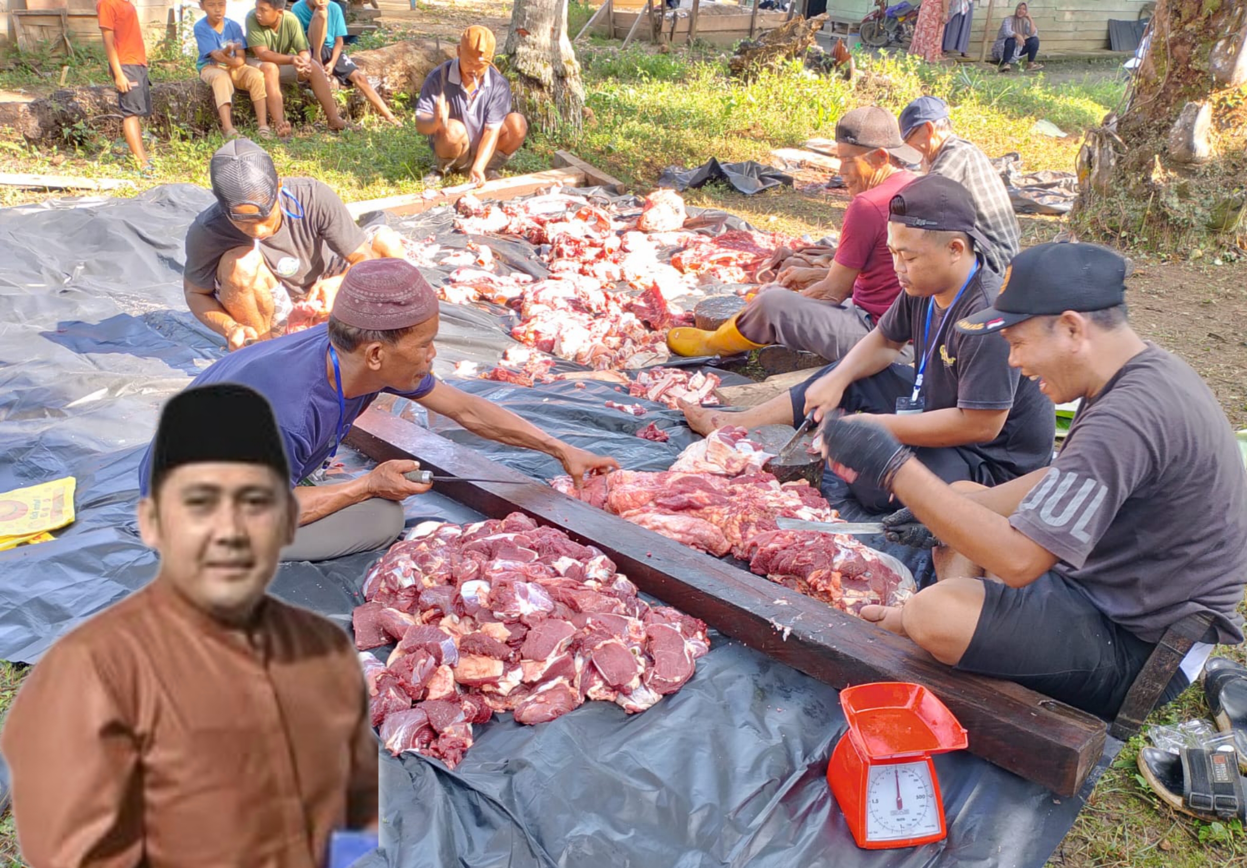 Meskipun hanya memotong dua ekor sapi, Bupati merangin M syukur tercatat sebagai salah satu yang ikut menjadi anggota Qurban di dusun Rawasari.