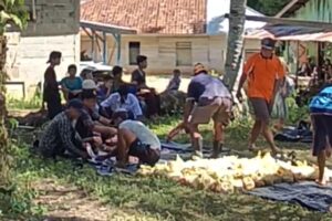 Dari dua ekor daging qurban sapi tersebut lansung di bagikan kepada 120 kepala keluarga, Di RT25 Dusun Rawasari.