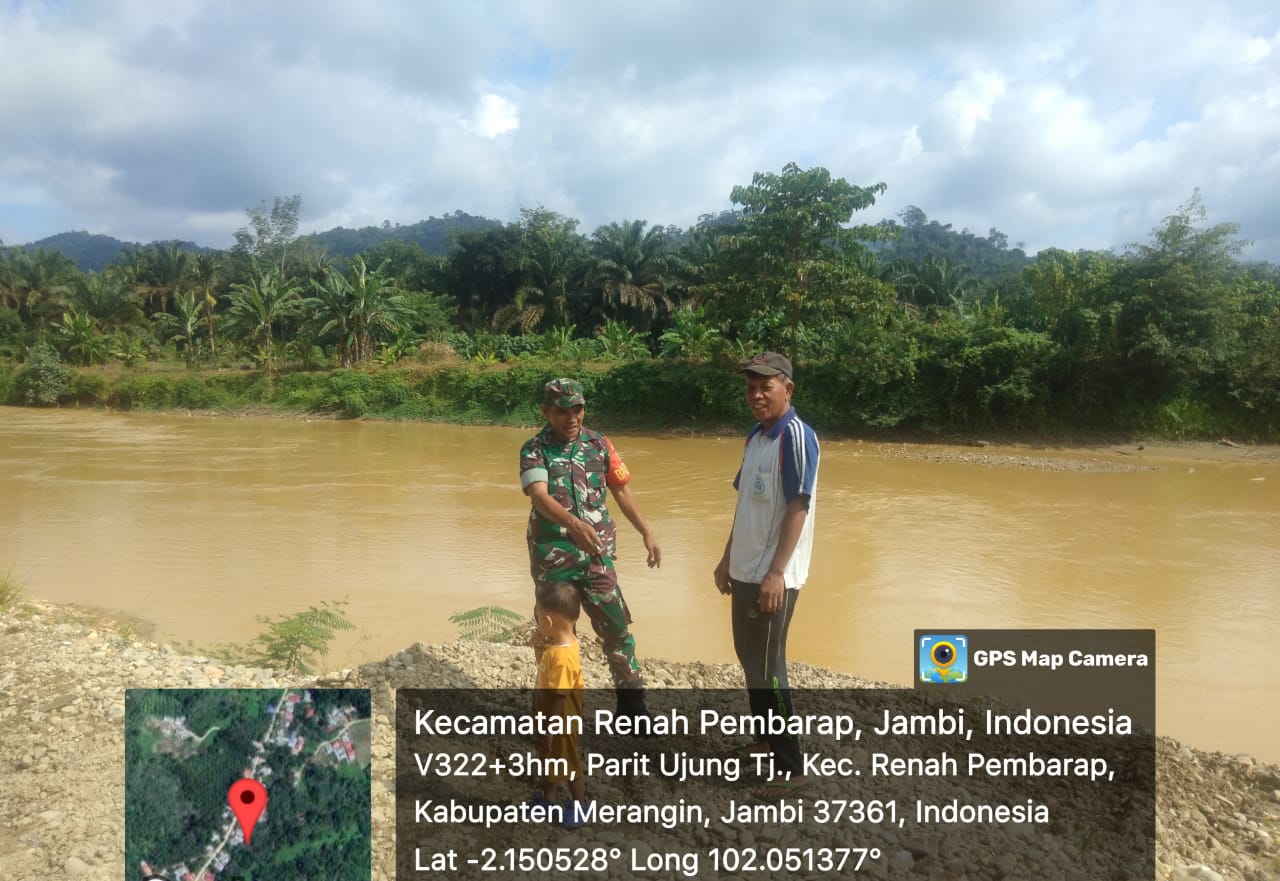 Sungai Manau – Untuk mengantisipasi adanya bencana Banjir dan tanah longsor, Babinsa Koramil 420-07/Sungai Manau Kodim 0420/Sarko, Serka Vony Yandri melakukan patroli Bansor sekalian cek debit air di Sungai Merangin wilayah Kecamatan Sungai Manau, Kabupaten Merangin. Minggu (08/6/2025)