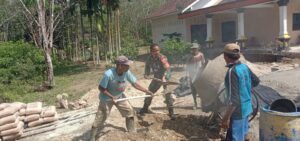 Atas kesepakatan seluruh warga, maka dilaksanakan pengecoran secara gotong royong untuk mempermudah akses jalan bagi masyarakat.