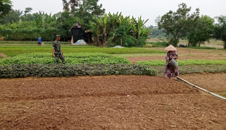 Koramil 420-04/Sarolangun Kodim 0420/Sarko Serda Azwan melaksanakan Ketahanan Pangan (Hanpangan) dengan membantu tanaman milik petani dengan jenis tanaman sayur kangkung, di Desa Teluk Mancur, Kecamatan. Bhatin VIII, Kabupaten. Sarolangun.(09/06/2025)