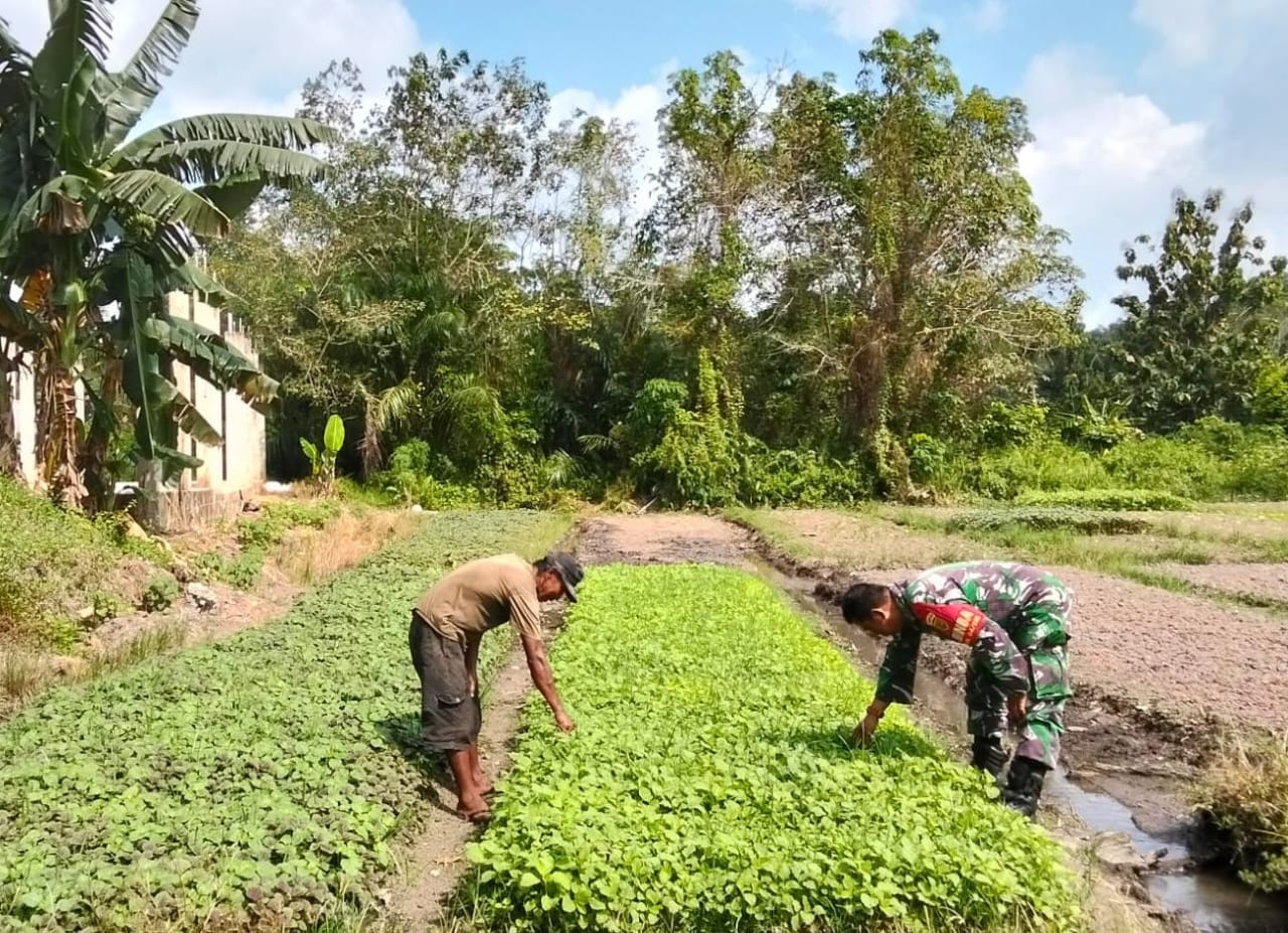 Sarolangun – Komitmen TNI dalam mendukung ketahanan pangan kembali terlihat di Kabupaten Sarolangun. Babinsa Desa Tanjung, Koramil 420-04/Sarolangun Kodim 0420/Sarko, Peltu Mujiono, melakukan kegiatan komunikasi sosial (komsos) dengan petani bayam di Desa Tanjung, Kecamatan Bathin VIII, Selasa (17/06/25).